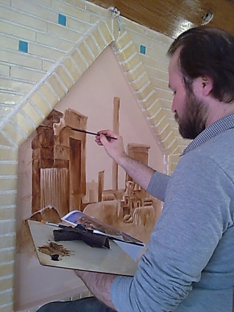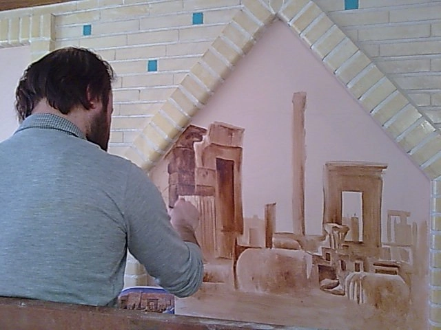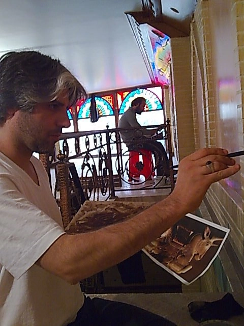 اجرای نقاشی نمادهای ایران باستان در رستوران سنتی زنجان شمالی